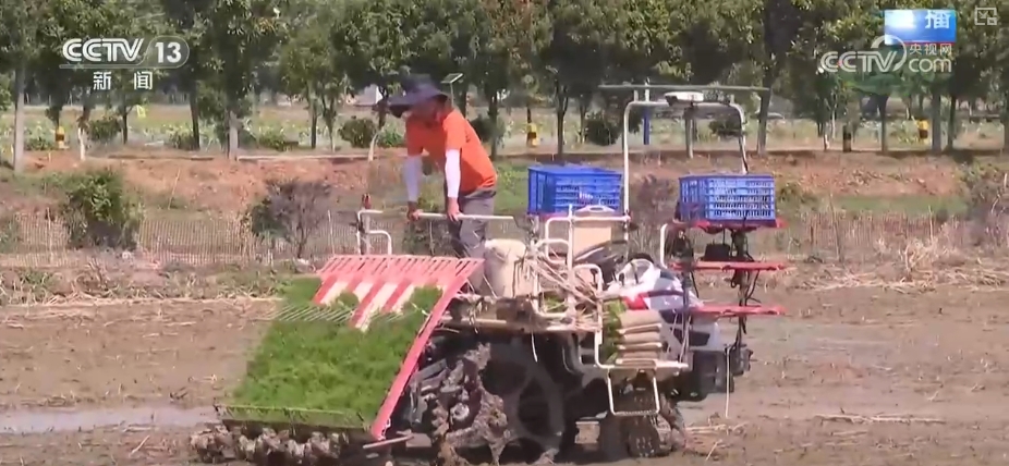 这里种植的是一种两收的再生稻,这里进行了最初一片再生稻的插秧工做。无人驾驶的插秧机正正在功课,只需要农技人员放置秧盘,本来,这片田若是用保守人工插秧,需要9小我干一天才能干完。现正在,无人插秧机只需要1小时就能搞定,并且秧苗之间距离很是尺度,这也便利了小鸭子们的奔驰。
